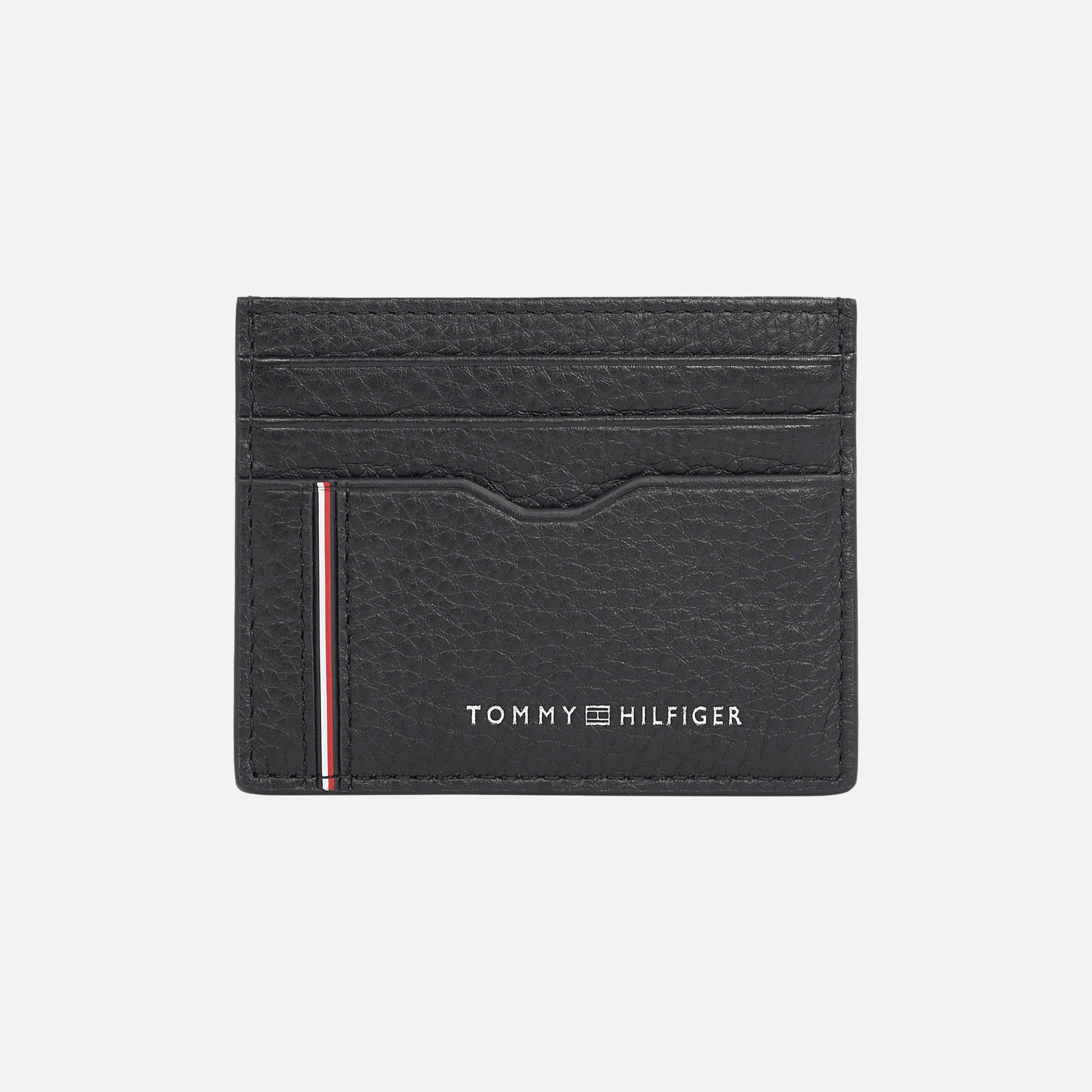محفظة مدمجة من الجلد المحبب مع شعار TH منقوش وفتحات بطاقات متعددة.