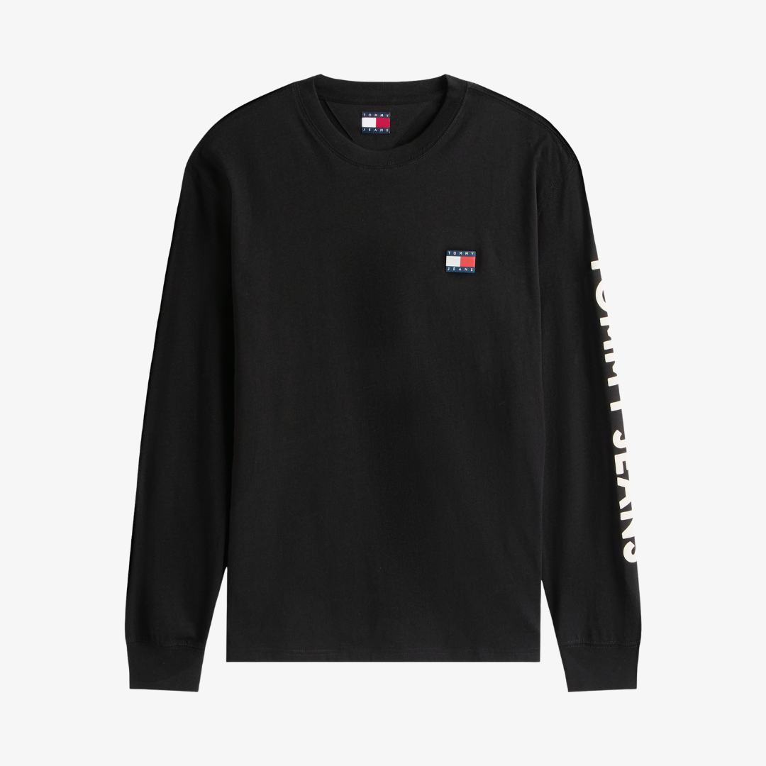T-shirt à manches longues, coupe régulière, col rond, logo Tommy Jeans brodé sur la poitrine et marquage sur la manche. Un basique moderne et urbain, facile à porter au quotidien ou en superposition.