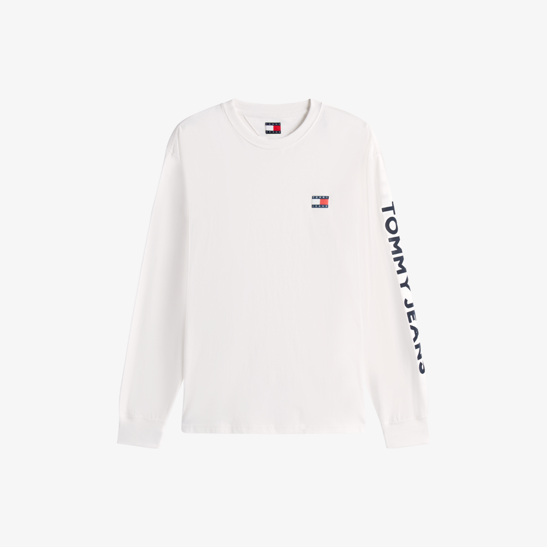 T-shirt à manches longues, coupe régulière, col rond, logo Tommy Jeans brodé sur la poitrine et marquage sur la manche. Un basique moderne et urbain, facile à porter au quotidien ou en superposition.
