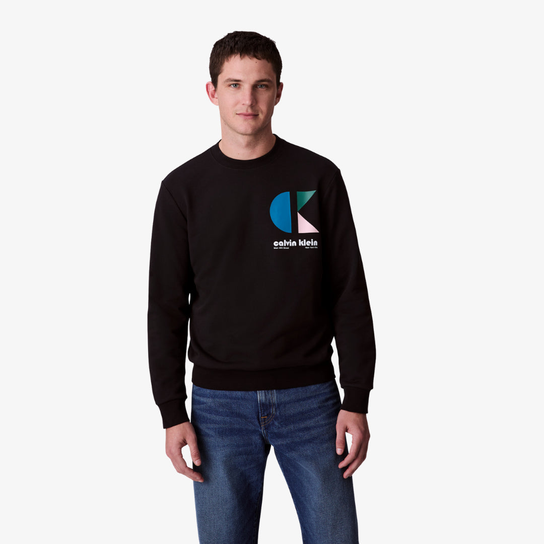 Sweatshirt pour homme, coupe régulière, col rond, manches longues, imprimé discret « CK Jeans » sur la poitrine. Parfait pour un style urbain quotidien.