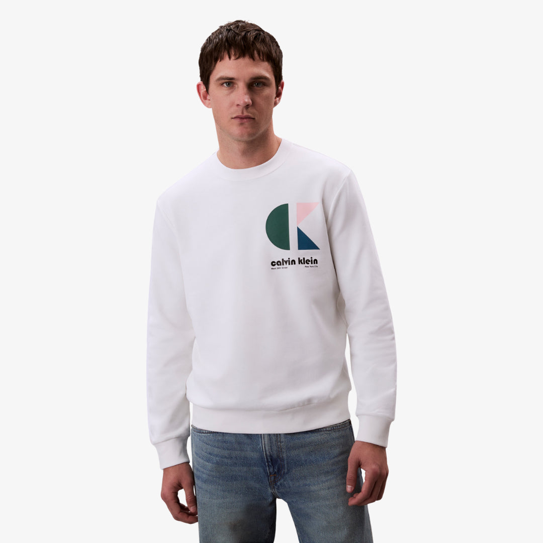 Sweatshirt pour homme, coupe régulière, col rond, manches longues, imprimé discret « CK Jeans » sur la poitrine. Parfait pour un style urbain quotidien.
