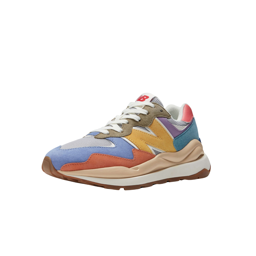 New Balance 5740 Femmes Chaussures – La New Balance 5740 revisite la célèbre silhouette 574 avec des détails modernes et un jeu de couleurs audacieux. Sa tige associe une base en maille respirante à des empiècements en daim multicolore — bleu clair, gris, rouge-orangé, bleu marine et violet — pour un look vibrant et original. Le grand logo “N†jaune Wheatfield apporte une touche distinctive, tandis que la semelle intermédiaire superposée en mousse blanche offre un amorti léger et un style contemporain. Sa semelle extérieure en caoutchouc gomme assure adhérence et durabilité, pour une sneaker à la fois rétro et actuelle.